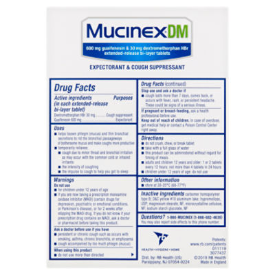 Mucinex Dm Expectorant Cough Suppressant 600 Mg Extended Release Bi Layer Tablets